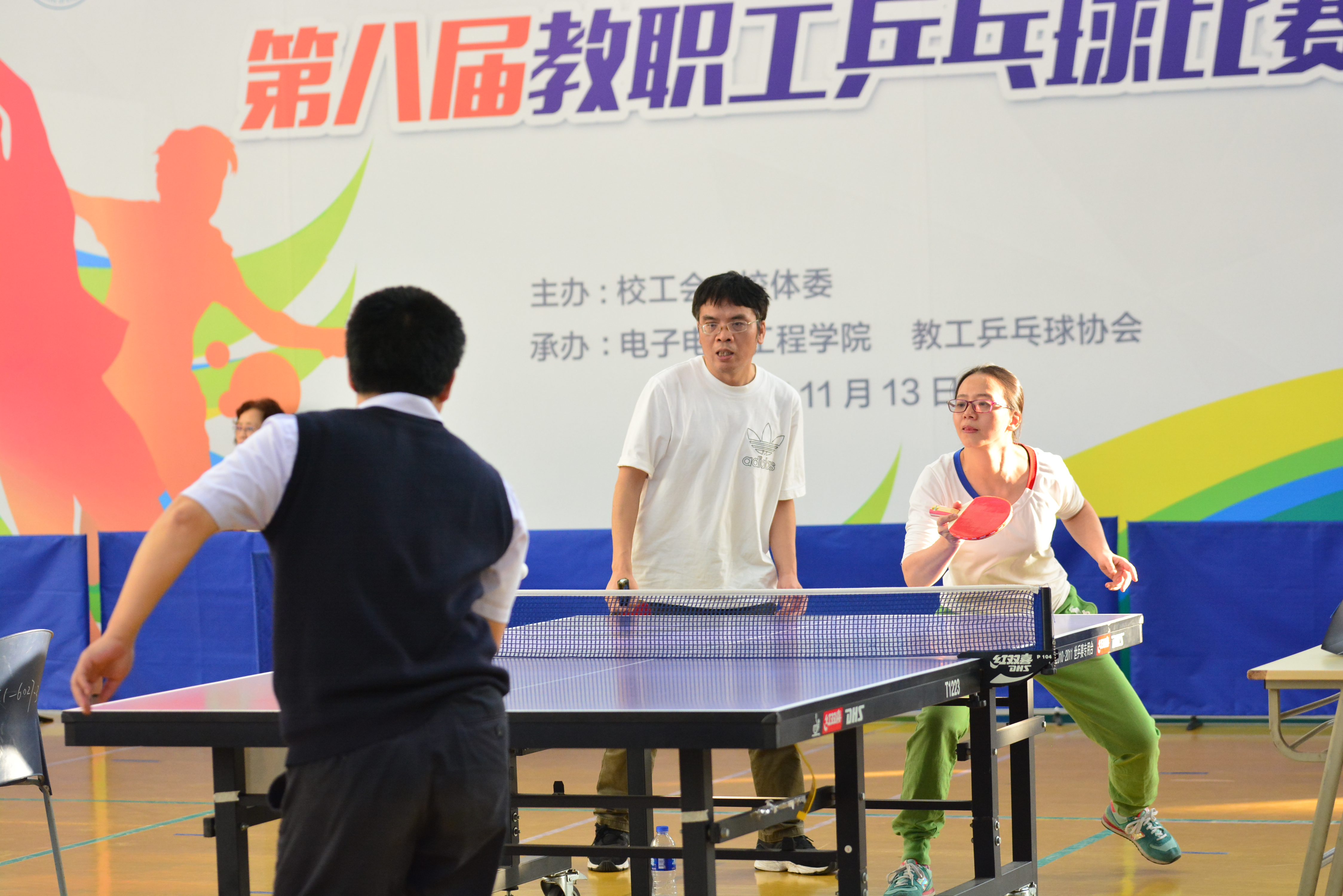为进一步贯彻落实全民健身战略,丰富广大教职工精神文化生活,提升校园文化品味,11月13日下午,由校工会、校体委主办、电子电气工程学院工会、教工乒乓球协会承办的“共享运动健康,逐梦精彩人生”上海工程技术大学第八届教职工乒乓球比赛在体育馆二楼顺利举行。全校14个部门近60余名教职工参加比赛。校党委副书记、工会主席史健勇,体育部部长张建新,工会常务副主席柳如荣及全体运动员、工作人员出席了开幕式,电子电气工程学院副院长刘瑾主持仪式。