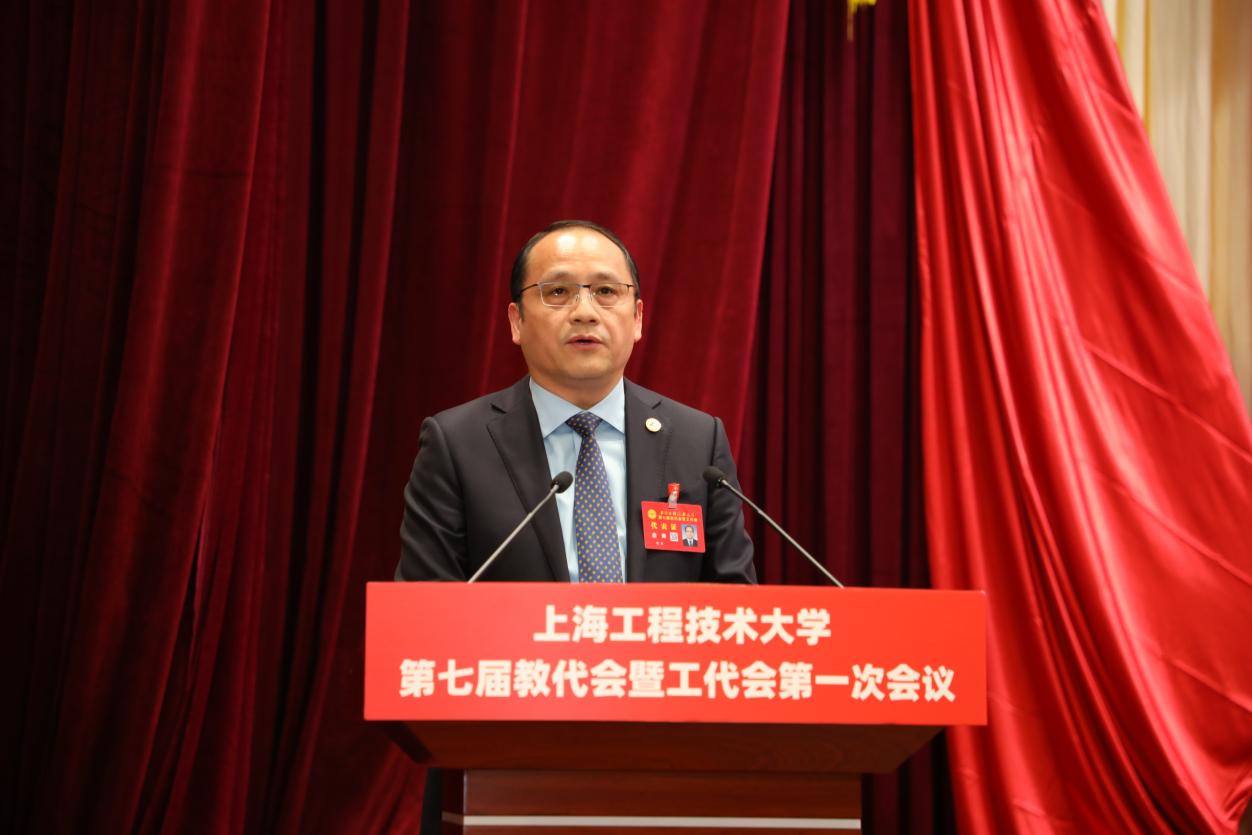 校党委副书记、校长俞涛在开幕式上作《校长工作报告》。报告全面回顾了学校2023年在扎实开展主题教育、持续优化学科专业布局、产教融合引领人才培养改革、科教融汇提升创新策源能力、引用并举深化人才强校战略、国际交流坚持提质增效、守正创新彰显思政育人合力、主动服务国家和上海重大战略、持续提升管理和服务效能等九个方面取得的可喜成绩,明确提出了2024年行政工作总体目标:聚焦“三特”把握发展“新方向”,围绕产教融合构建质量“新标准”、围绕国家地方发展战略塑造服务“新动能”、推动综合改革开创管理“新局面”、提升保障能力适配办学“新阶段”五个方面的主要任务,号召全体教职员工以改革者的勇气和姿态,为加快学校高质量发展和教育强国建设作出更大的贡献!