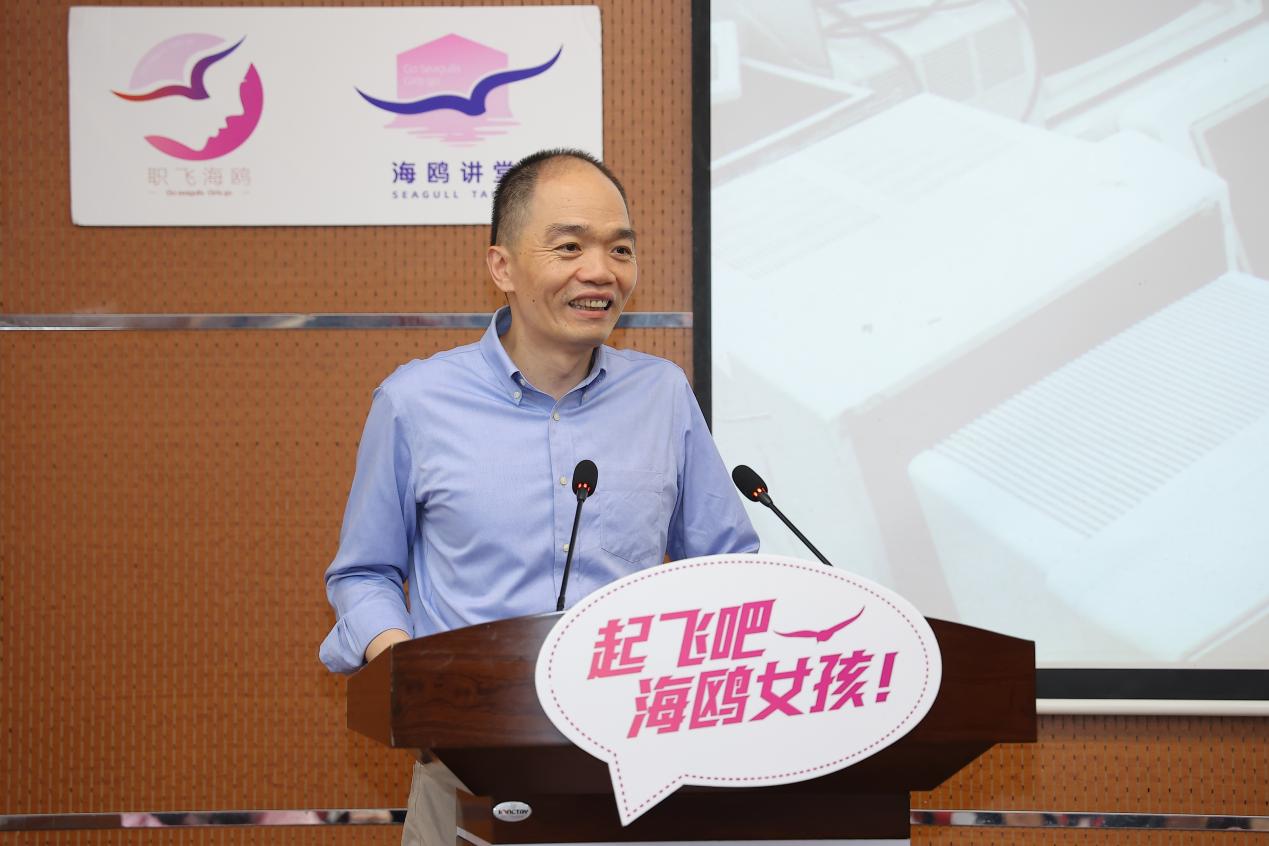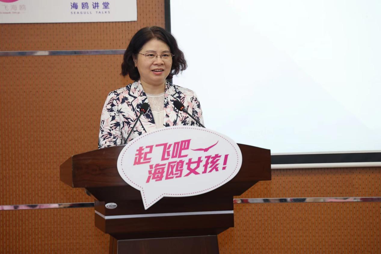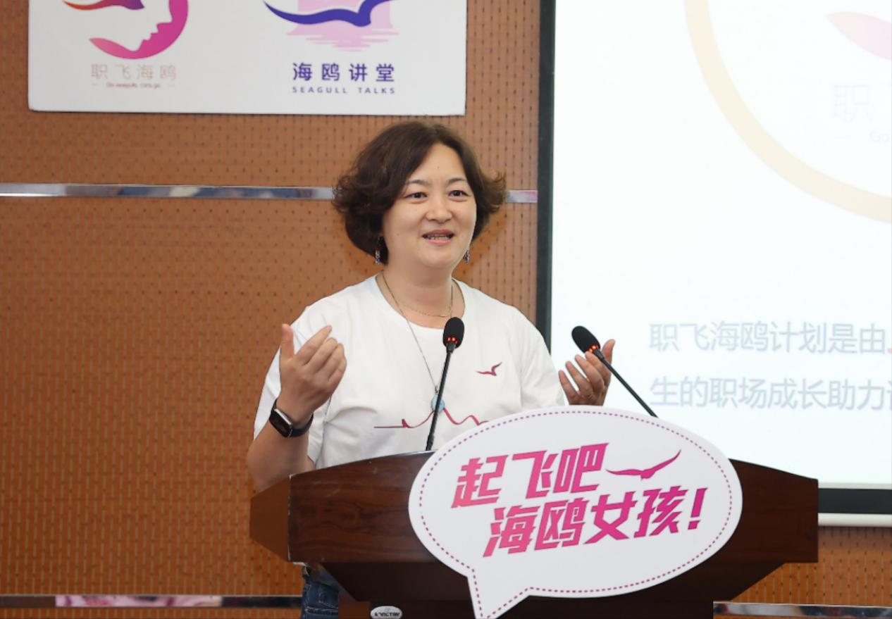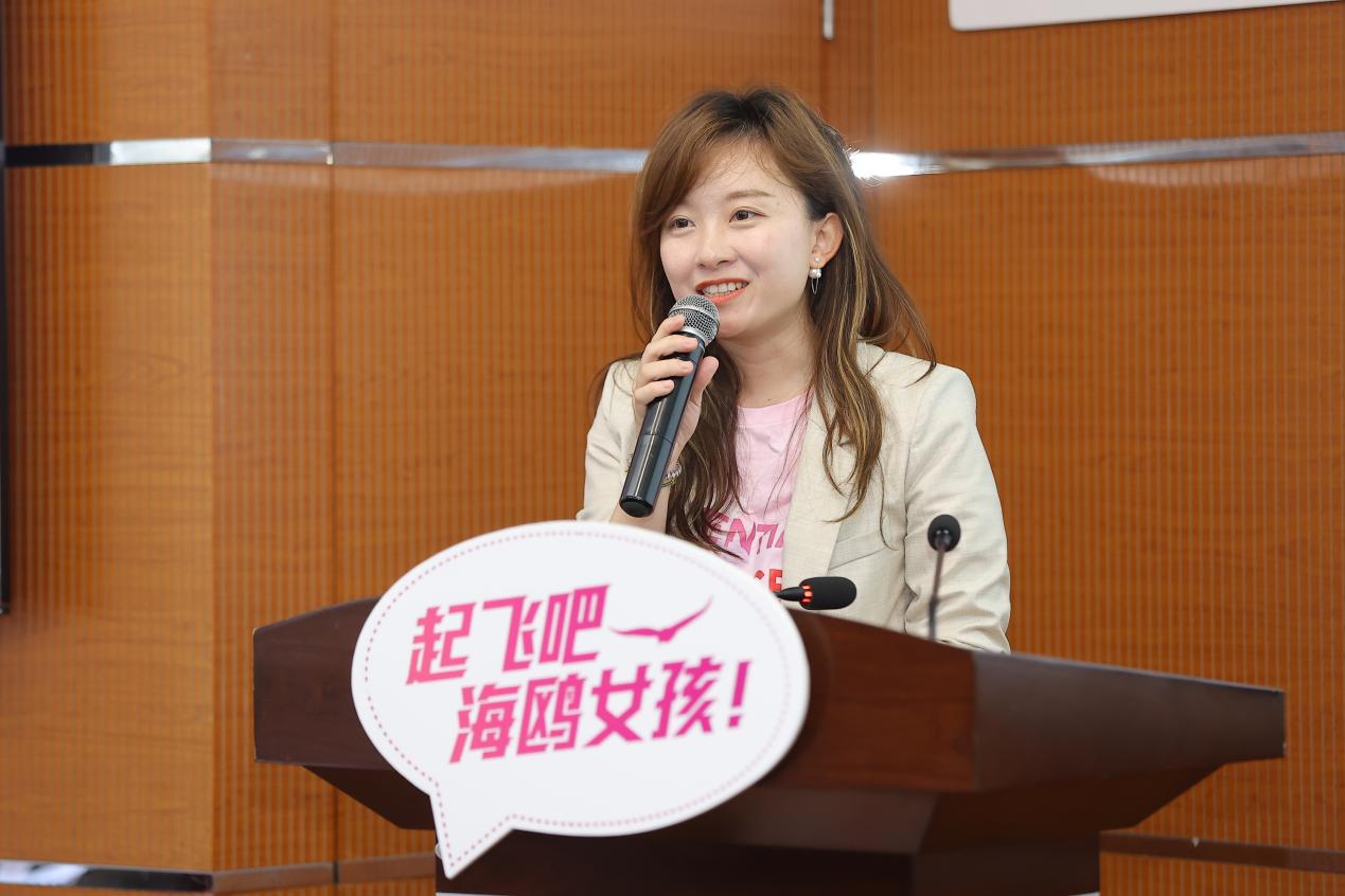 上海市女企业家协会副会长、海鸥计划策划人蔡婷为大家详细介绍海鸥计划。蔡女士将小海鸥喻作大树,海鸥计划喻作土壤,生动阐释了海鸥计划的内核,即在职业成长之路中,给予女大学生关怀与帮助,通过陪伴与关怀,帮助大家更好地对话明天的自己。她从“了解自己的需求”“亲身在企业学习”“企业和小海鸥的融合交流”三方面总结了“海鸥计划”的益处。