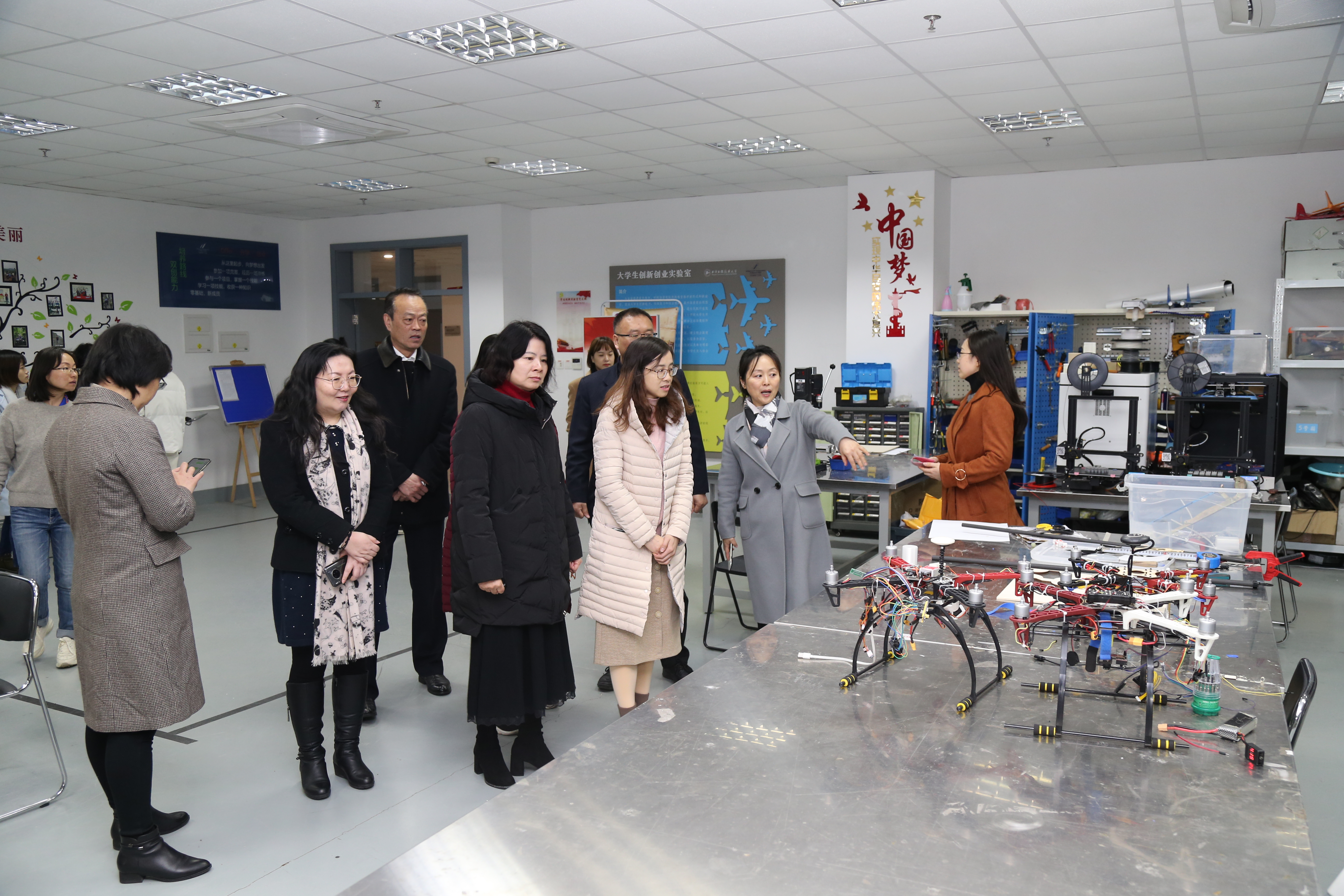 督导组一行实地走访了艺术设计学院和航空运输学院(飞行学院)妇女小家,现场参观了“程韵风华”妇女组织“三全育人”优秀案例文创展、抗疫艺术作品展,以及飞行模拟机训练中心、大学生创新创业实验室(航模实验室)、客舱服务训练室(航空急救训练室)等,并观摩了上海市三八红旗集体原创获奖微电影《恕》。通过实地考察,进一步展示学校“妇女之家”“一家一品”特色以及妇女组织发挥育人纽带作用的平台、机制和载体,给督导组留下了深刻印象。