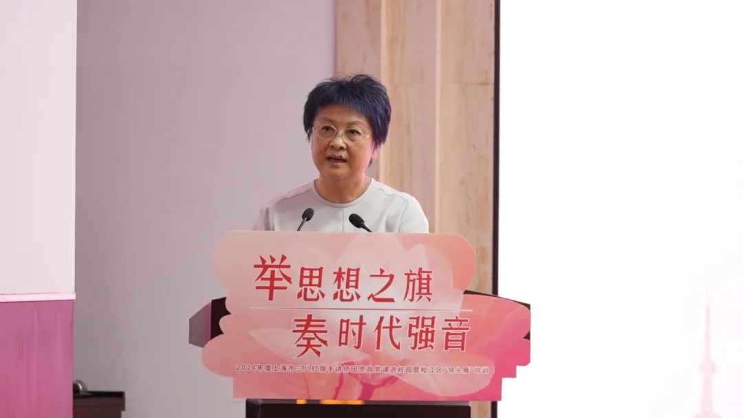 10月16日,由上海市妇联主办,上海市三八红旗手联谊会、松江区妇联与我校联合承办的“举思想之旗 奏时代强音”——上海市三八红旗手讲师团思政党课进校园暨松江区“领头雁”培训活动在我校举行。校党委副书记、副校长、妇工委主任朱晓青,上海市三八红旗手联谊会会长陈岩、松江区妇联党组书记、主席张军梅出席活动,松江大学城各高校妇工委、师生代表,松江区优秀青年女性代表以及松江区妇联2024年“领头雁”培训班全体学员参加活动。