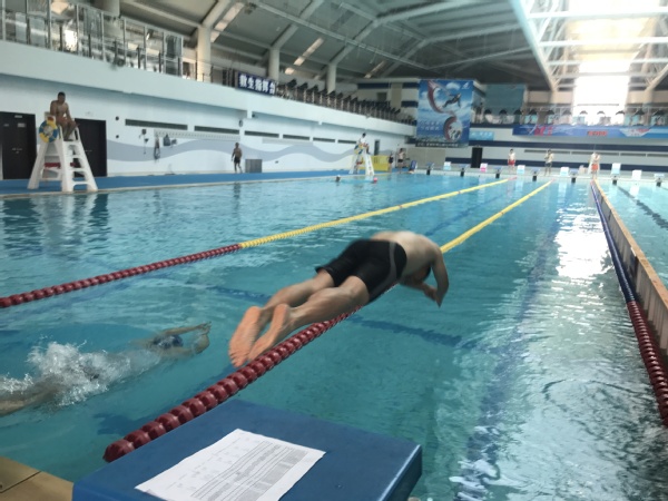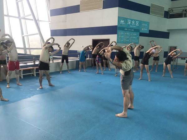 本次比赛分个人赛和团体赛,广大教师积极响应,踊跃报名。赛前,体育部常先坤带领选手们在池边作了充分的赛前热身准备。