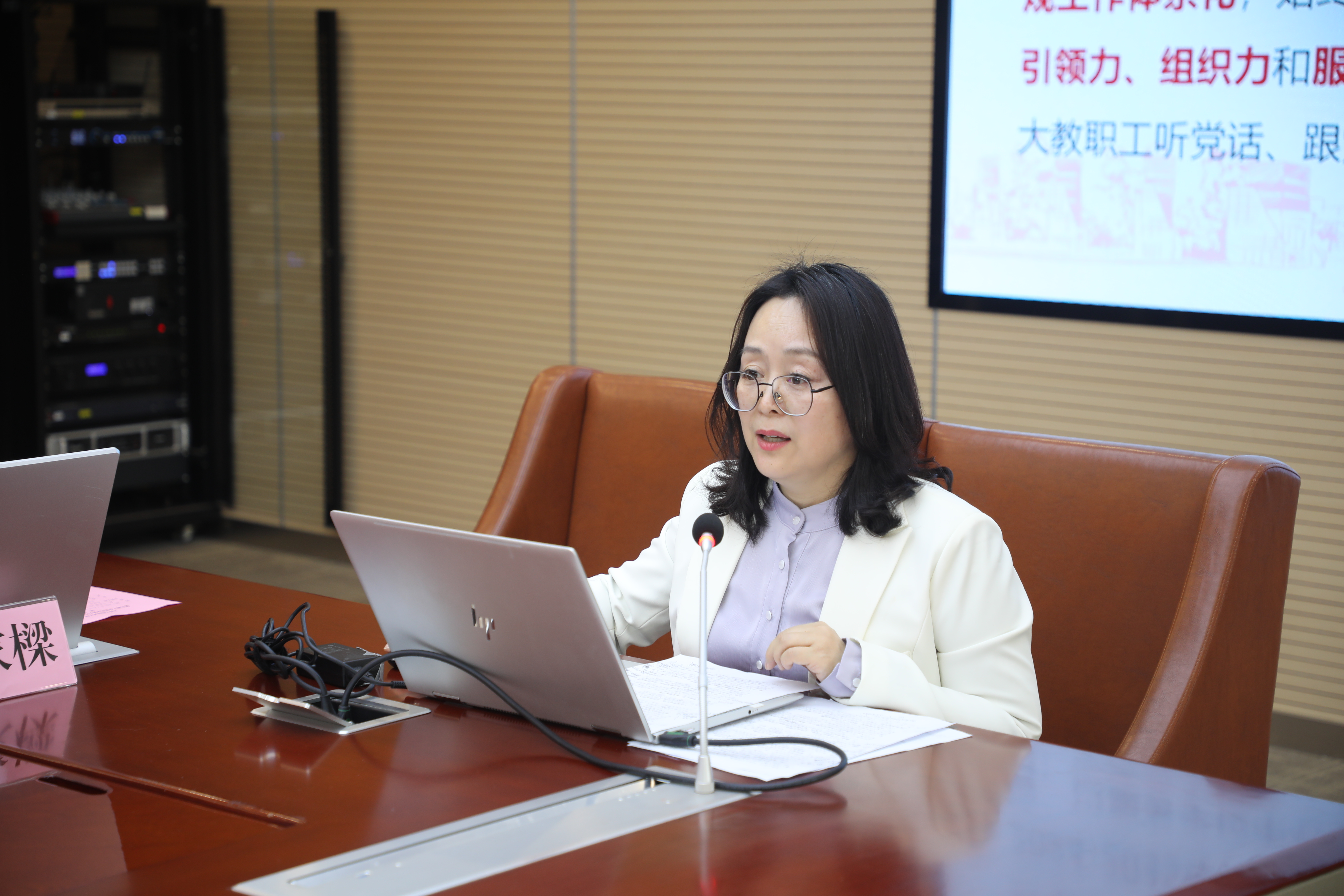 校党委副书记、工会主席朱晓青对工会(妇工委)做好2025年重点工作提出三点要求:一是提高政治站位,牢牢把握工会工作正确方向。要坚定不移加强党的领导,引导教职工听党话、跟党走;要服务中心大局,推动学校重点改革任务落地见效。二是聚焦主责主业,构建工会服务学校大局的新格局。要着力实施“五大工程”,扎实有效发挥工会组织的桥梁纽带作用,切实提升教职工的获得感、幸福感、安全感。三是强化使命担当,建设一支高素质工会干部队伍。要强思想、强担当、强作风,真正把教职工团结好、引导好、服务好。