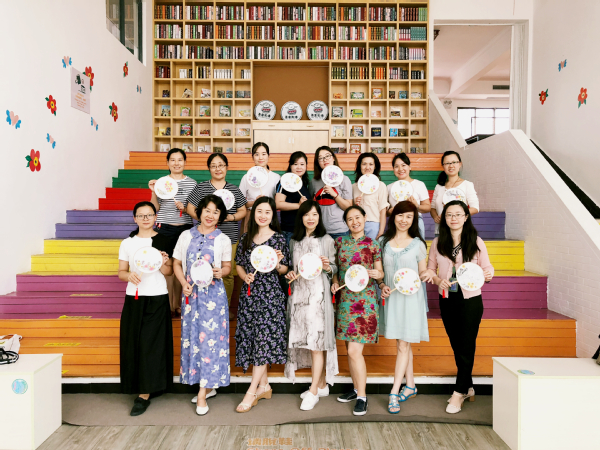 会后,老师们围坐一圈,在专业老师指导下精心制作手工团扇。多样的花色品种素材映衬着轻松舒适的团队氛围,为妇女干部的创作打开了自由想象的空间,摆花、构图、固定、压模、裁剪,一幅幅团扇美景映入眼帘。方芳老师巧手创作的卡通白描成为手工团扇的“点睛之笔”,老师们自发排队邀请方老师创作,把素拓活动推向了高潮。