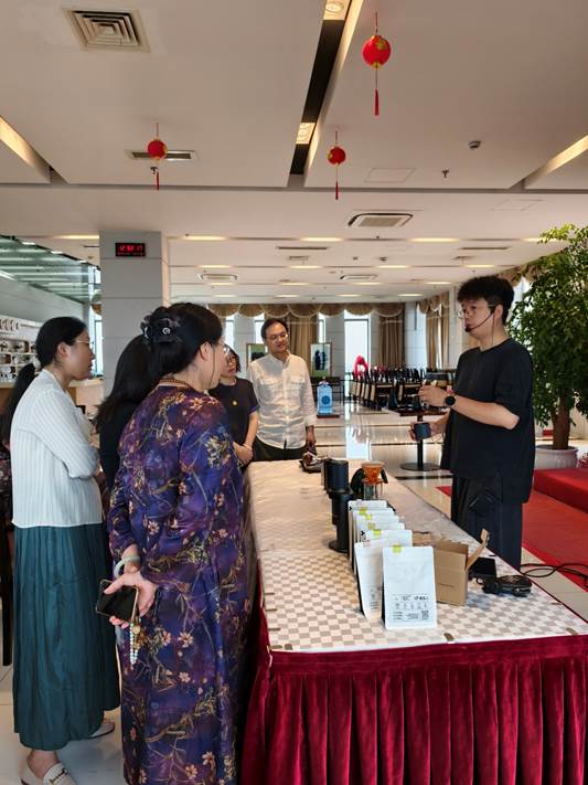 在咖啡师的讲解和指导下,老师们动手研磨手冲特色风味咖啡,研磨、称量、冲泡,逐渐掌握了手冲咖啡的技巧,并控制水温与流速,实验一般地创作出具有独特香气的手冲咖啡。教职工们相互交流求学时期高校校园的咖啡文化,探讨新时期学校和学院发展的新思路。老师们表示学校新时期发展战略既有新时代宏大叙事,又有建设咖啡吧这样细致的切入点,非常贴近师生,深刻感受到学校新发展的人文关怀,教职工们备受鼓舞。活动现场飘散着咖啡的醇厚香气,更充满了创新发展的思想火花。