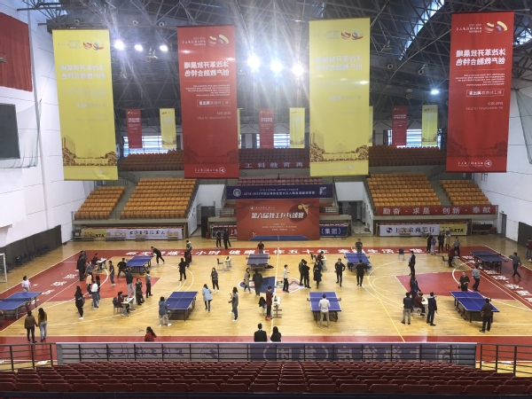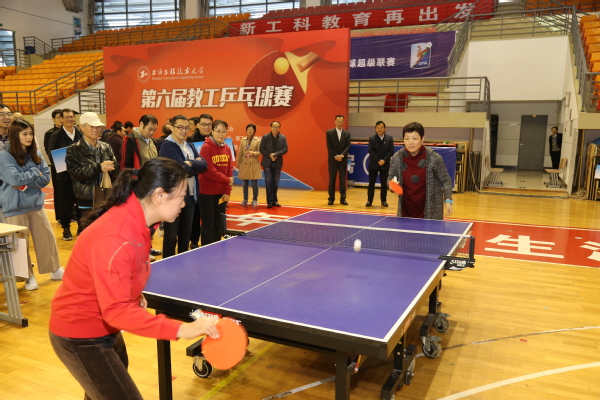 为进一步落实全民健身计划,丰富广大教职工业余文化生活,提升校园文化品味,11月16日下午,由校工会主办、电子电气工程学院工会、体育教学部承办、教工乒乓球协会协办的上海工程技术大学第六届教职工乒乓球比赛在体育馆一楼顺利举行。校党委副书记、工会主席史健勇及全校17个部门百余人次教职工参加了比赛。开幕式由电子电气工程学院院长方志军主持。