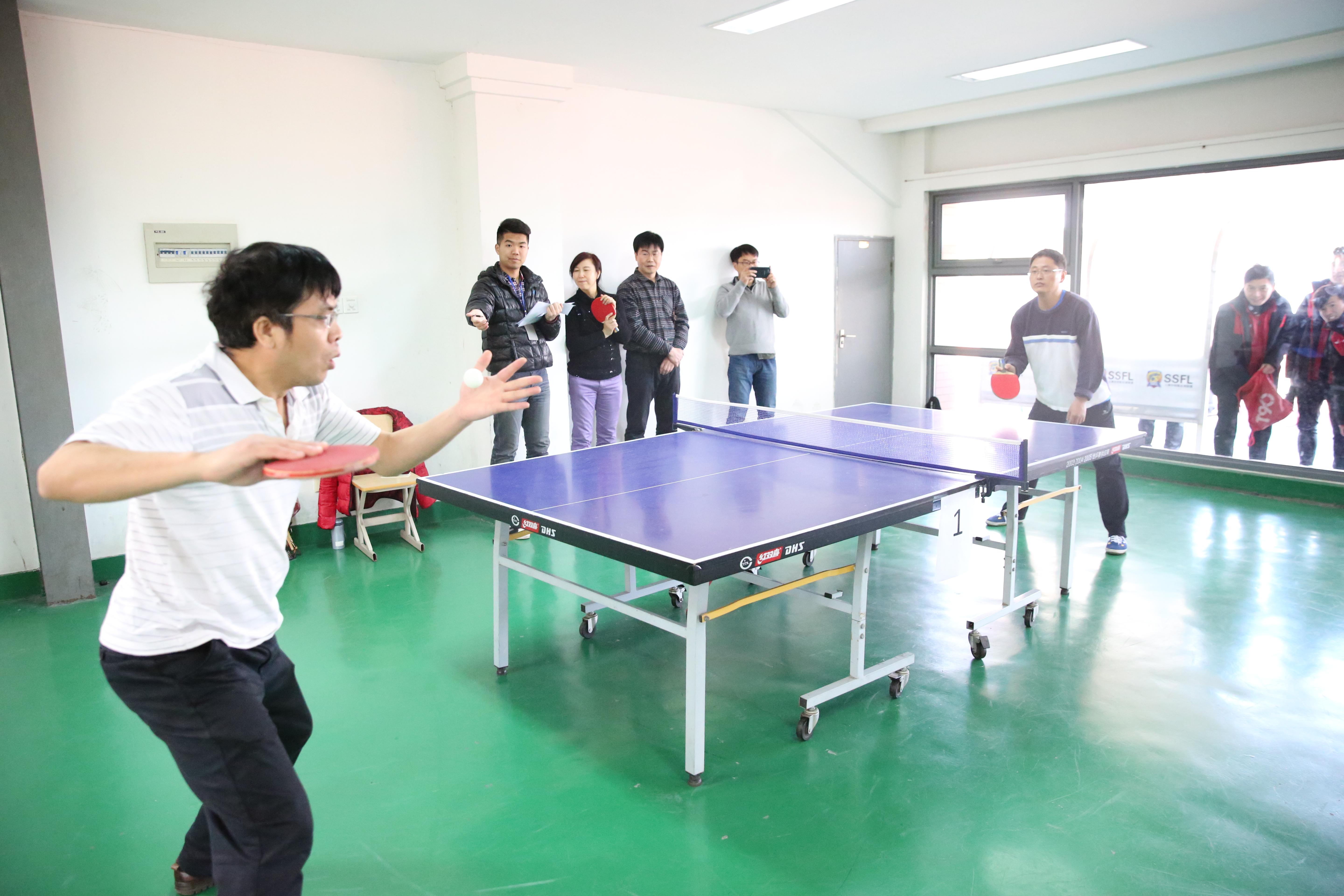 按照前期抽签顺序,各部门分成4个小组,首先进行小组循环赛。赛场上,各学院加油声此起彼伏,各位老师摆脱了平日里的劳累,争先恐后运动起来。