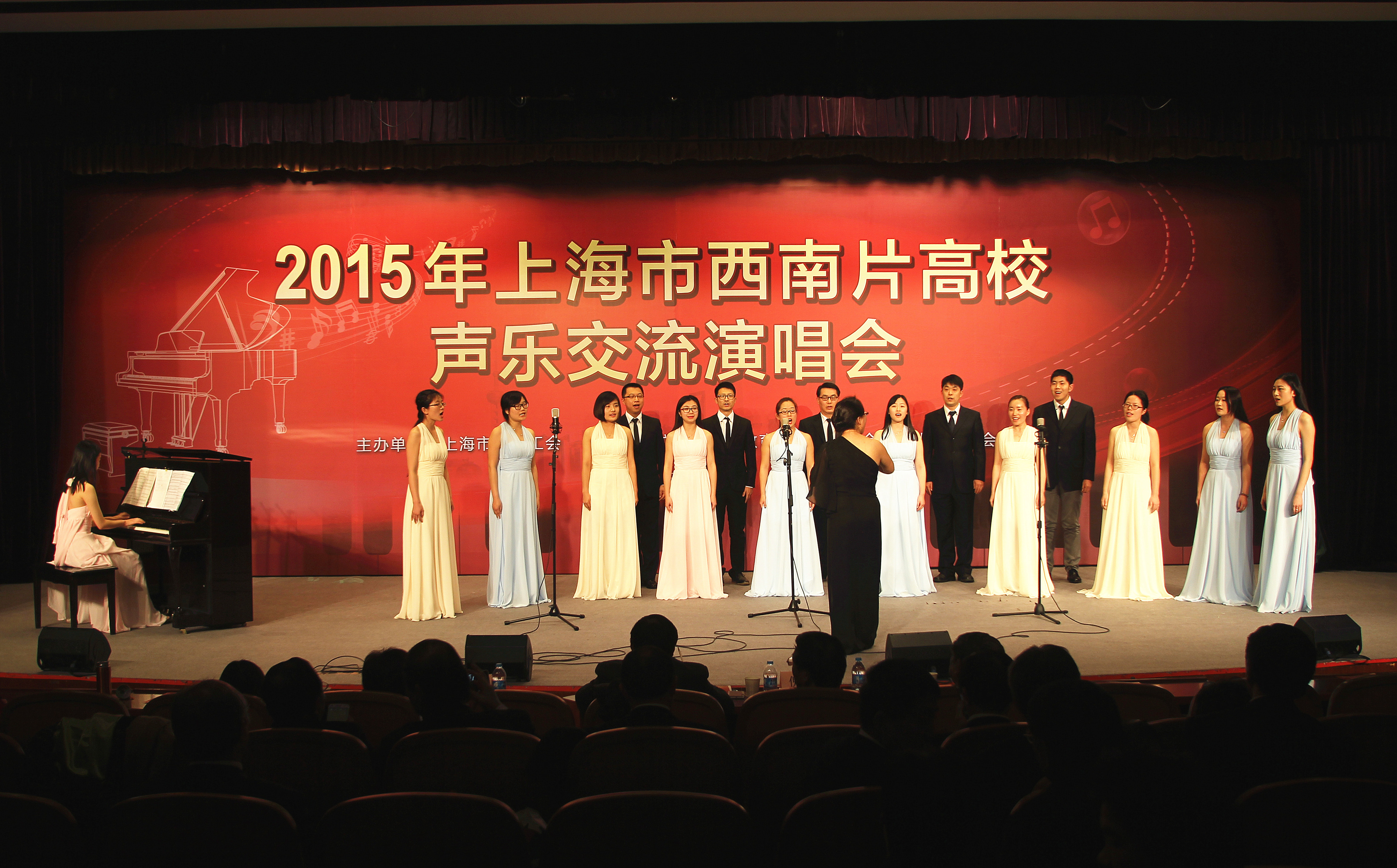 为了展现本市高校广大教职工昂扬向上的精神风貌,促进校园文化建设和校际间的文化交流,由上海市教育工会主办,上海市教工工会合唱协会、东华大学工会联合承办的上海西南片高校声乐交流演唱会活动于2015年12月30日在东华大学延安路校区隆重上演。上海市教育工会副主席贾进平,上海工程技术大学高等职业技术学院党委副书记、工会主席田盈耕,及各参演学校领导出席了本次交流演唱会活动。