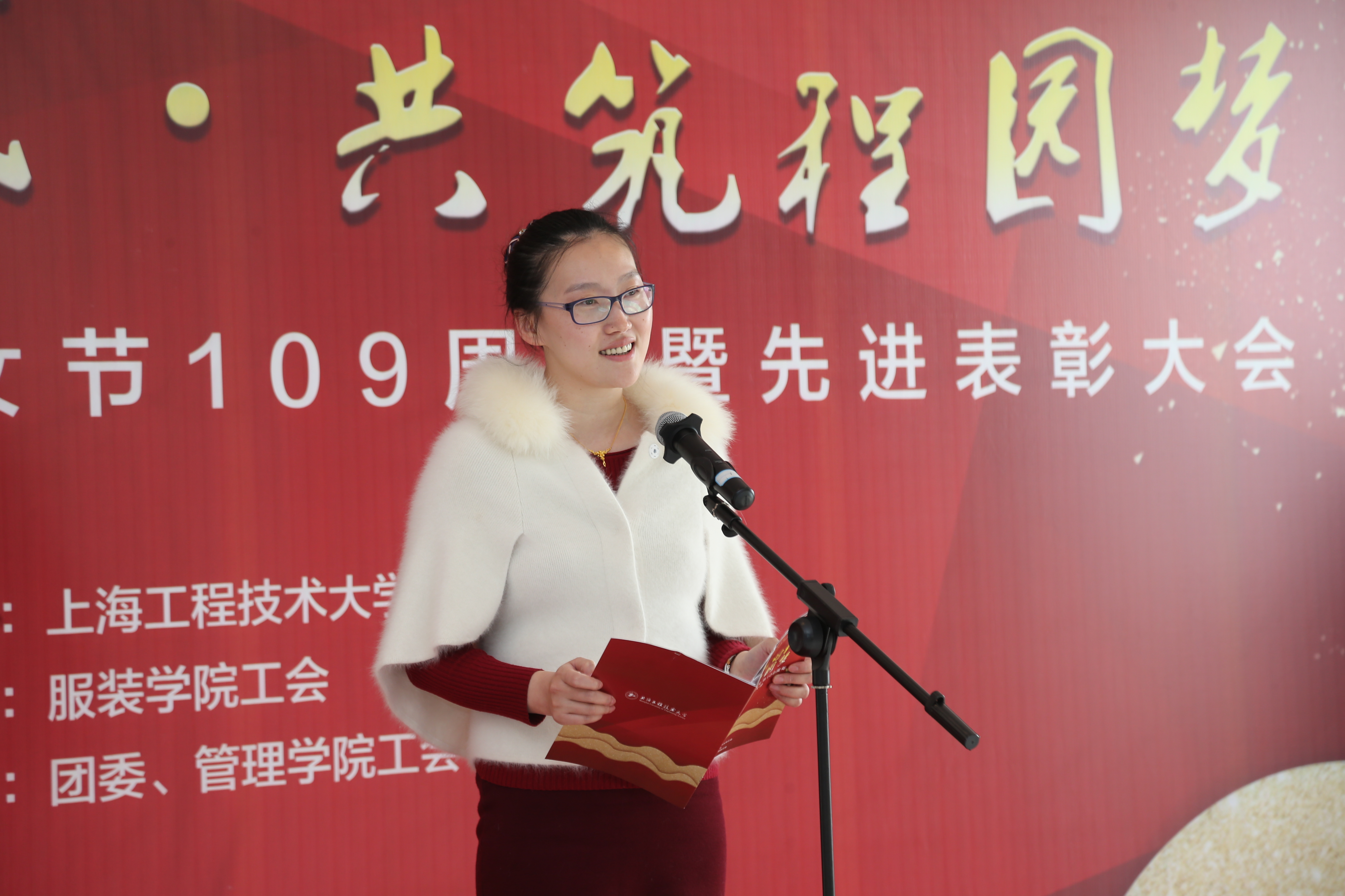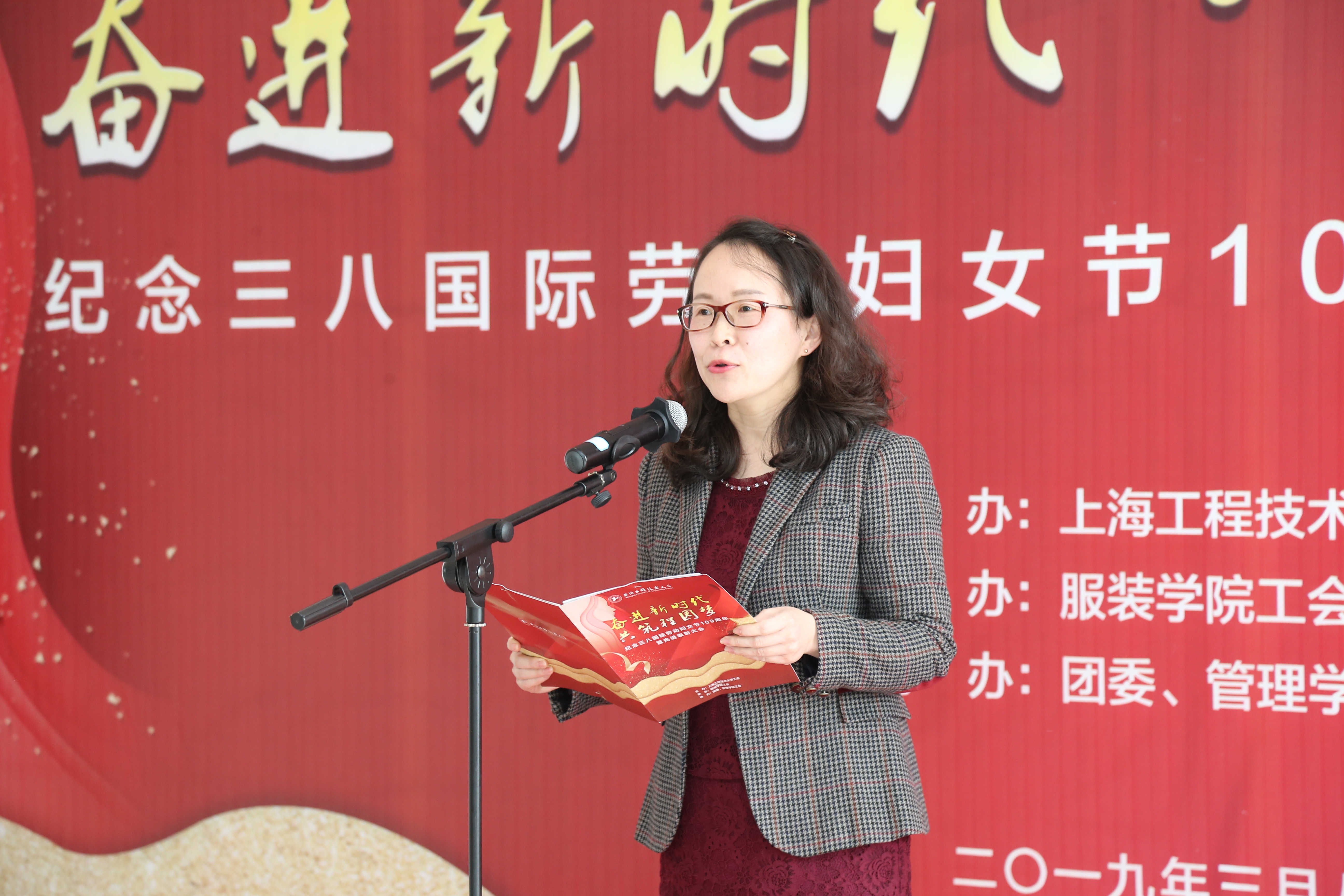 草木蔓发,芳华绽放。2019年3月8日上午,我校纪念三八国际劳动妇女节109周年暨先进表彰大会在行政楼19楼温情举行。本次大会以“奋进新时代·共筑程园梦”为主题,由校工会主办,服装学院工会承办,团委、管理学院工会协办。校党委书记李江,校党委副书记、工会主席史健勇出席会议,相关职能部处负责人、院部党政负责人、获奖教师、女教师代表以及女大学生代表共计150人参加活动。