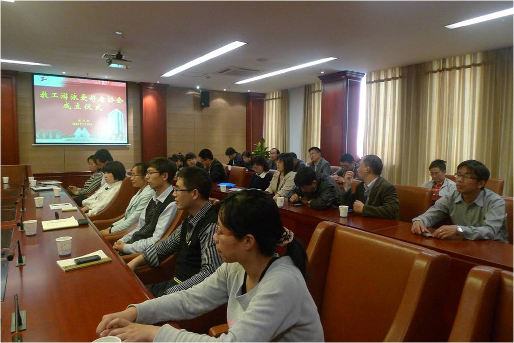 校工会副主席黄润才通报了教工游泳爱好者协会的各项筹备情况;社会科学学院党总支书记曹开云宣读并通过了教工游泳爱好者协会章程、组织机构人员组成和2013年协会工作计划。会议选举曹开云老师担任教工游泳爱好者协会会长,发展规划处处长沈勤老师任副会长。