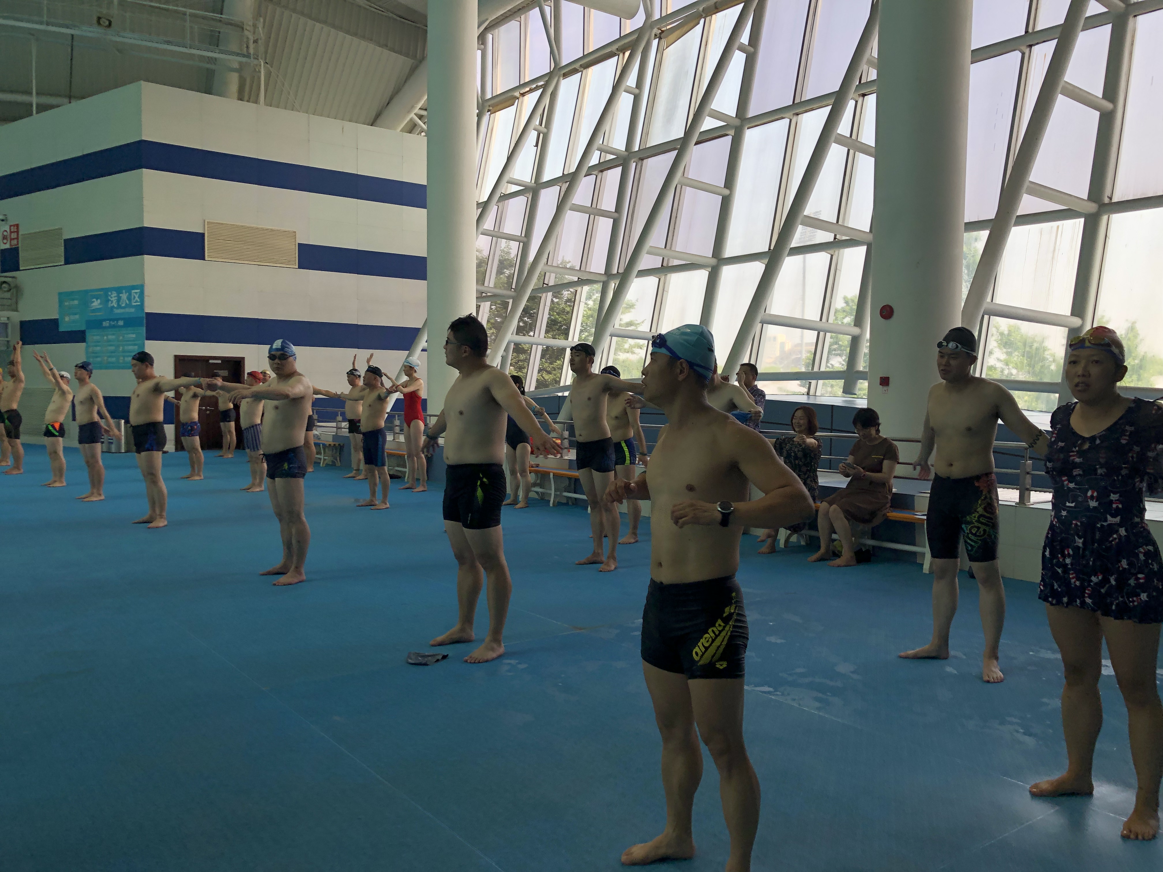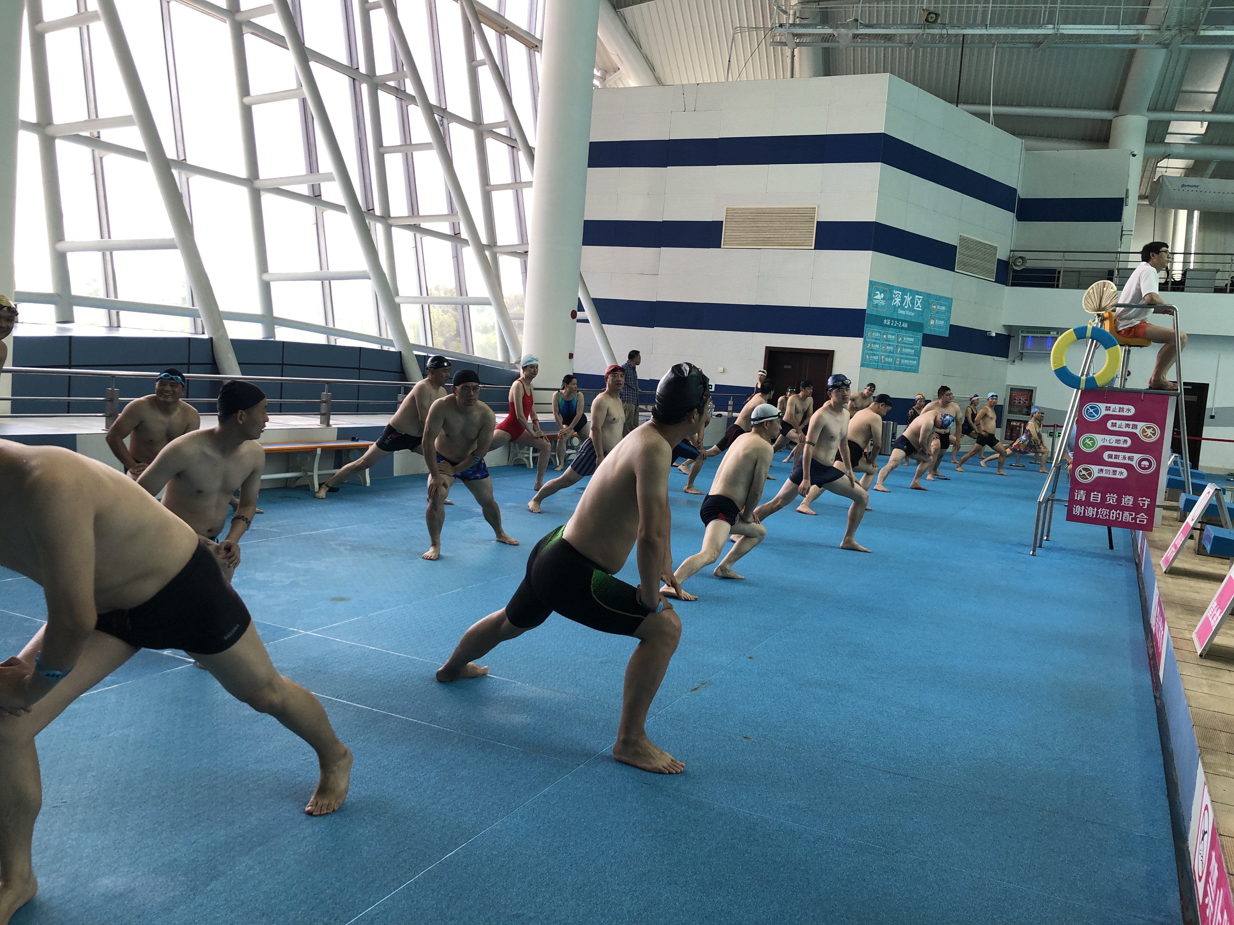本次比赛分教工男子组,教工女子组,团体接力赛三个竞赛项目。上午九点半,大学城游泳馆内,参赛运动员已早早做好了赛前的准备,个个精神抖擞,整装待发。正式比赛前,大学城游泳馆的张教练带领选手们在场馆内作了充分的赛前热身准备,并做了详细的赛前规则说明。