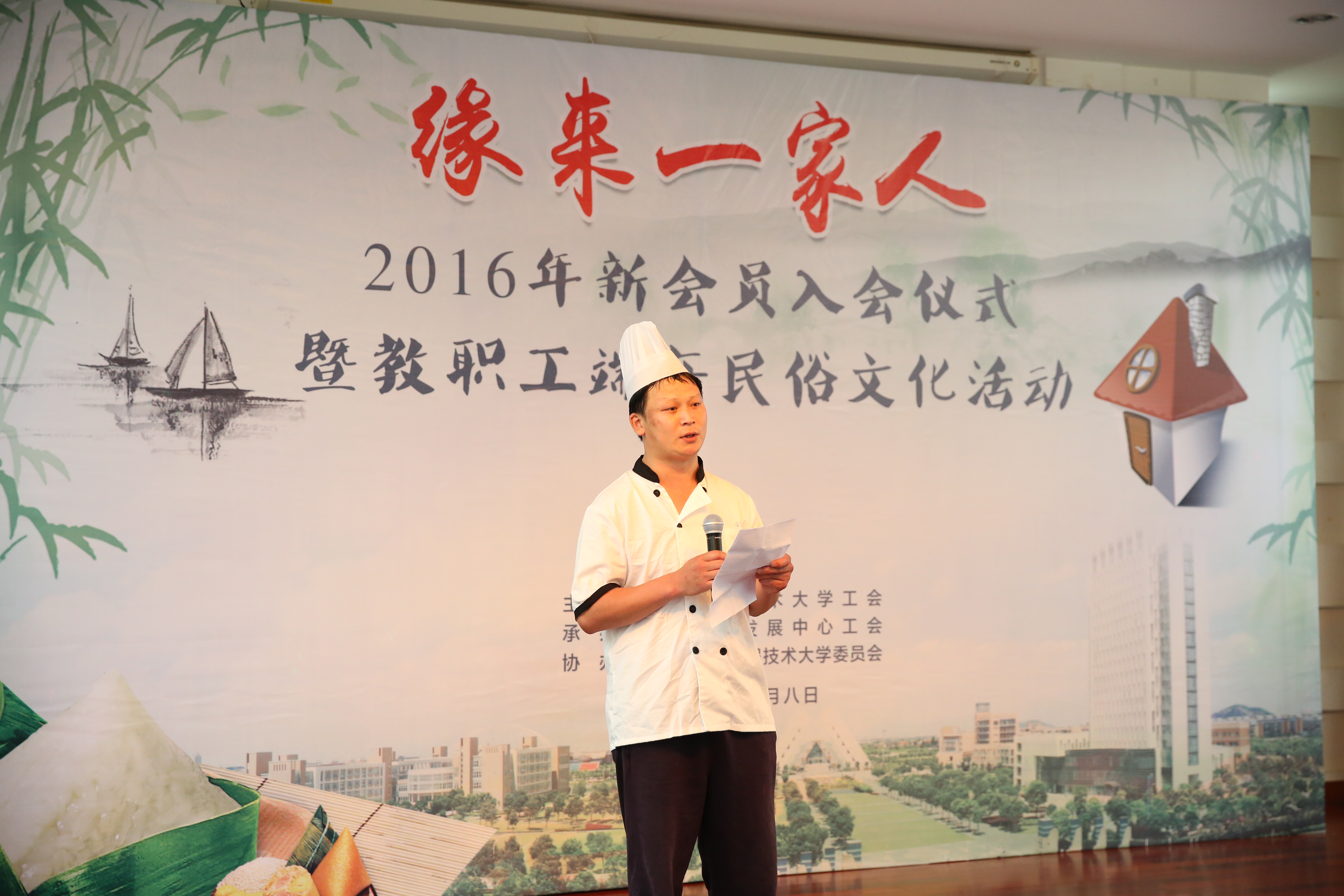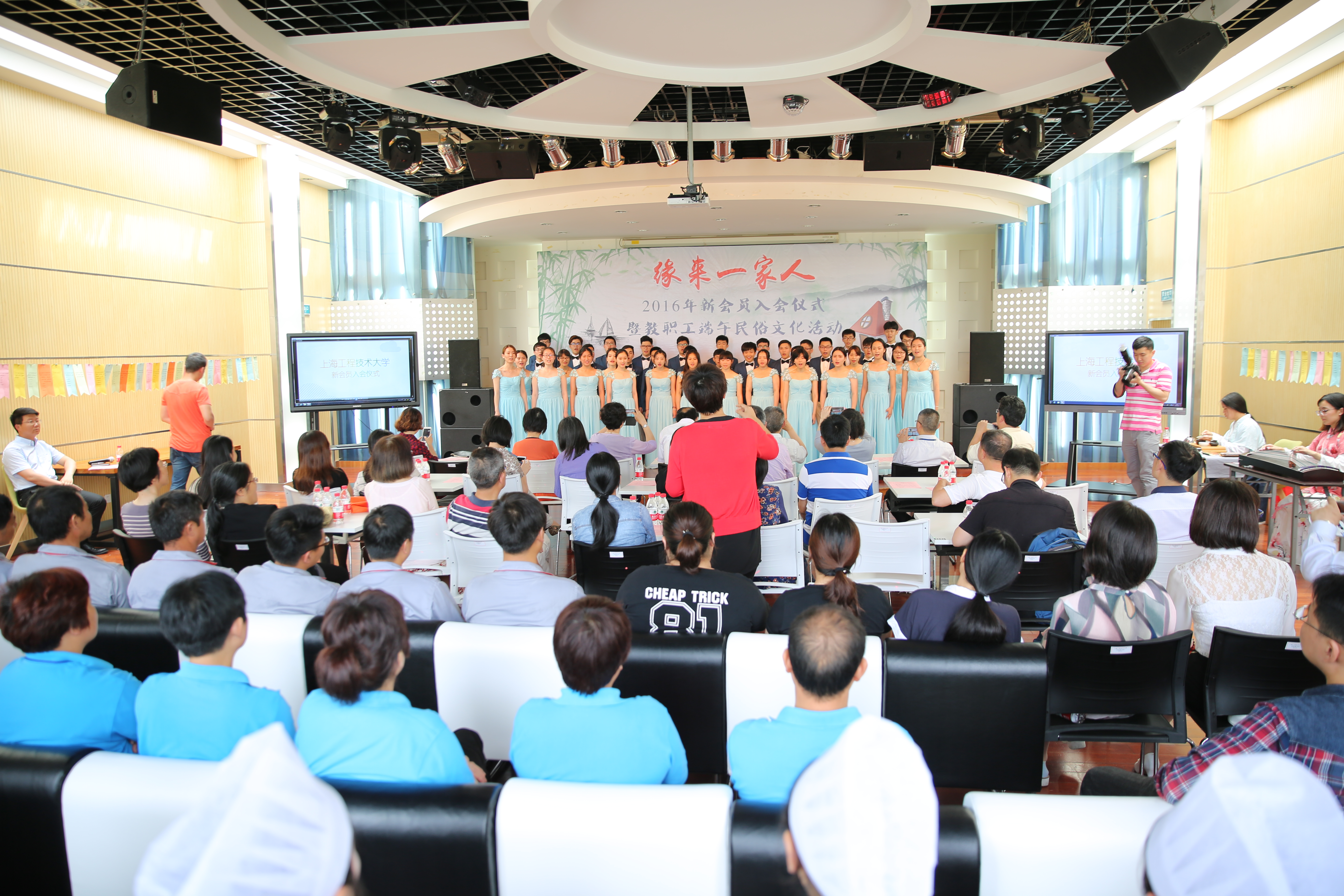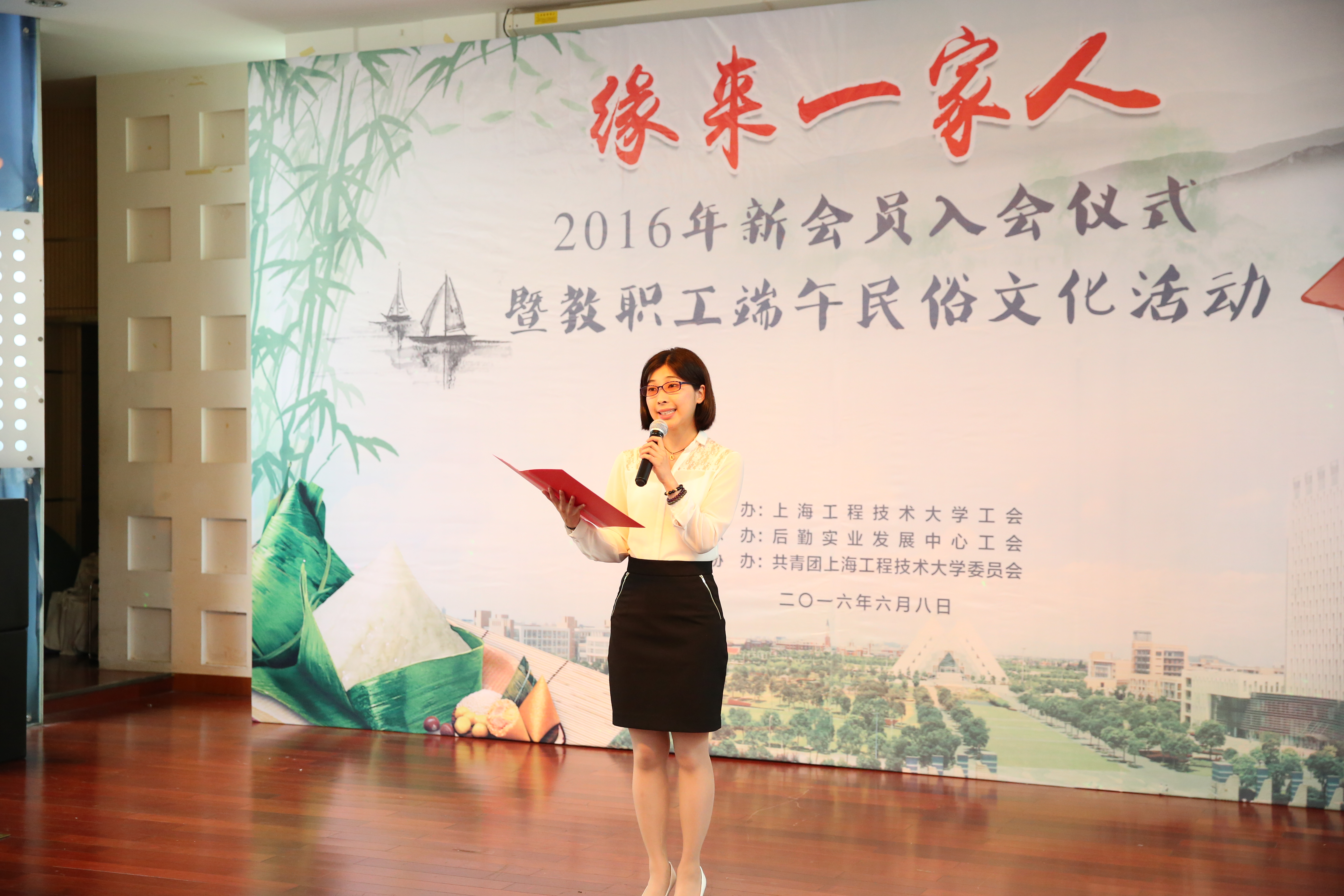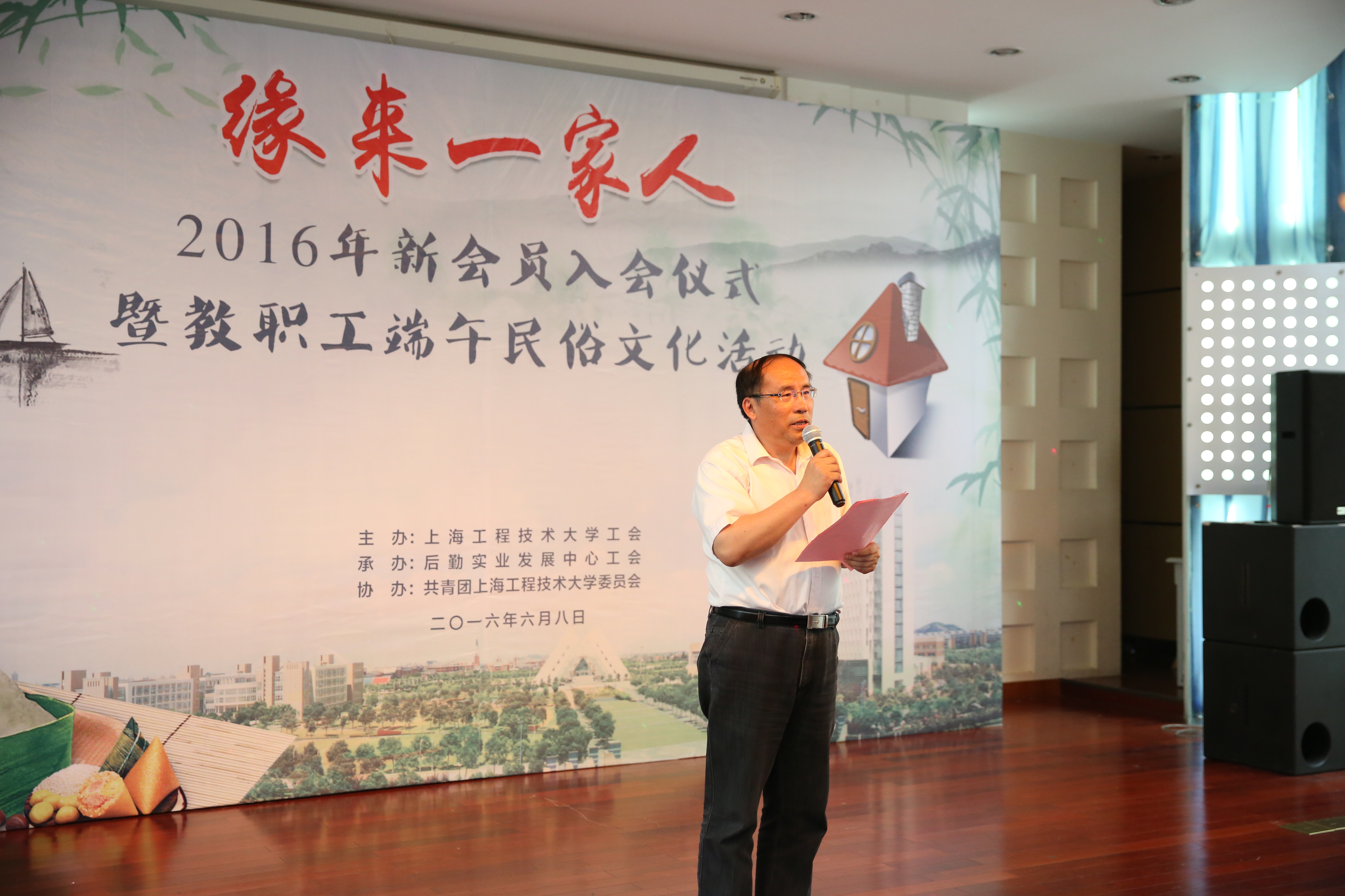 为了进一步做好学校各种编制教职工入会和服务工作,不断提升工会工作的归属感和覆盖面,努力建设和谐、奋进的工程大大家庭,6月8日,由上海工程技术大学工会主办,后勤实业发展中心工会承办,校团委协办的“缘来一家人”2016年新会员入会仪式暨教职工端午民俗文化活动在师生活动中心隆重举行。校党委副书记、工会主席夏斯云出席活动,人事处、国交处、宣传部、团委、后勤、产业等相关职能部处负责人,各部门工会主席,新入会会员代表以及教职工代表参加了本次活动。