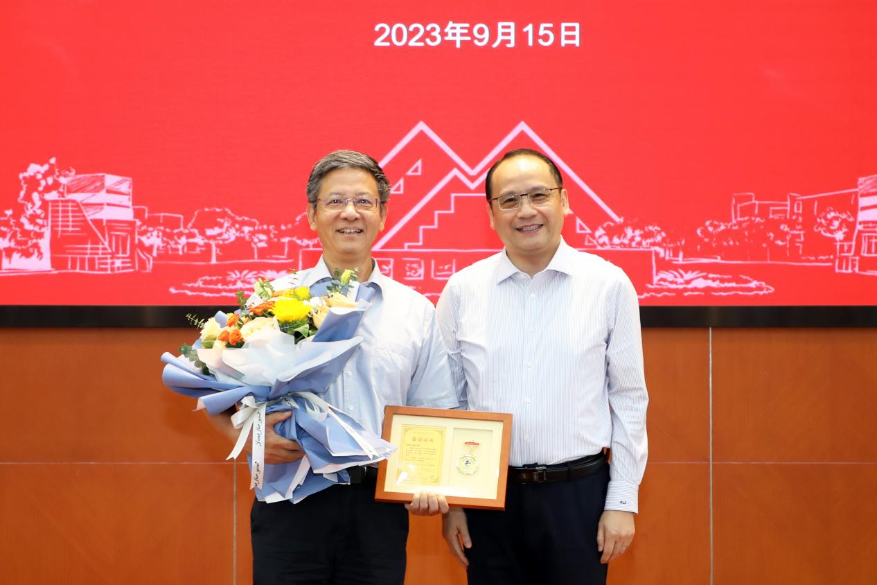 夏春明副校长宣读表彰决定并为2022-2023年度校先进集体、2022-2023年度校优秀教育工作者代表颁奖。