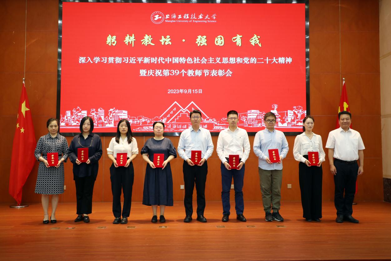 王岩松副校长宣读表彰决定并为第五届高等学校青年教师电工学课程教学竞赛、第五届上海高校青年教师教学竞赛、第十五届全国商科教育实践教学大赛、第三届上海市教师教学创新大赛获奖代表颁奖。