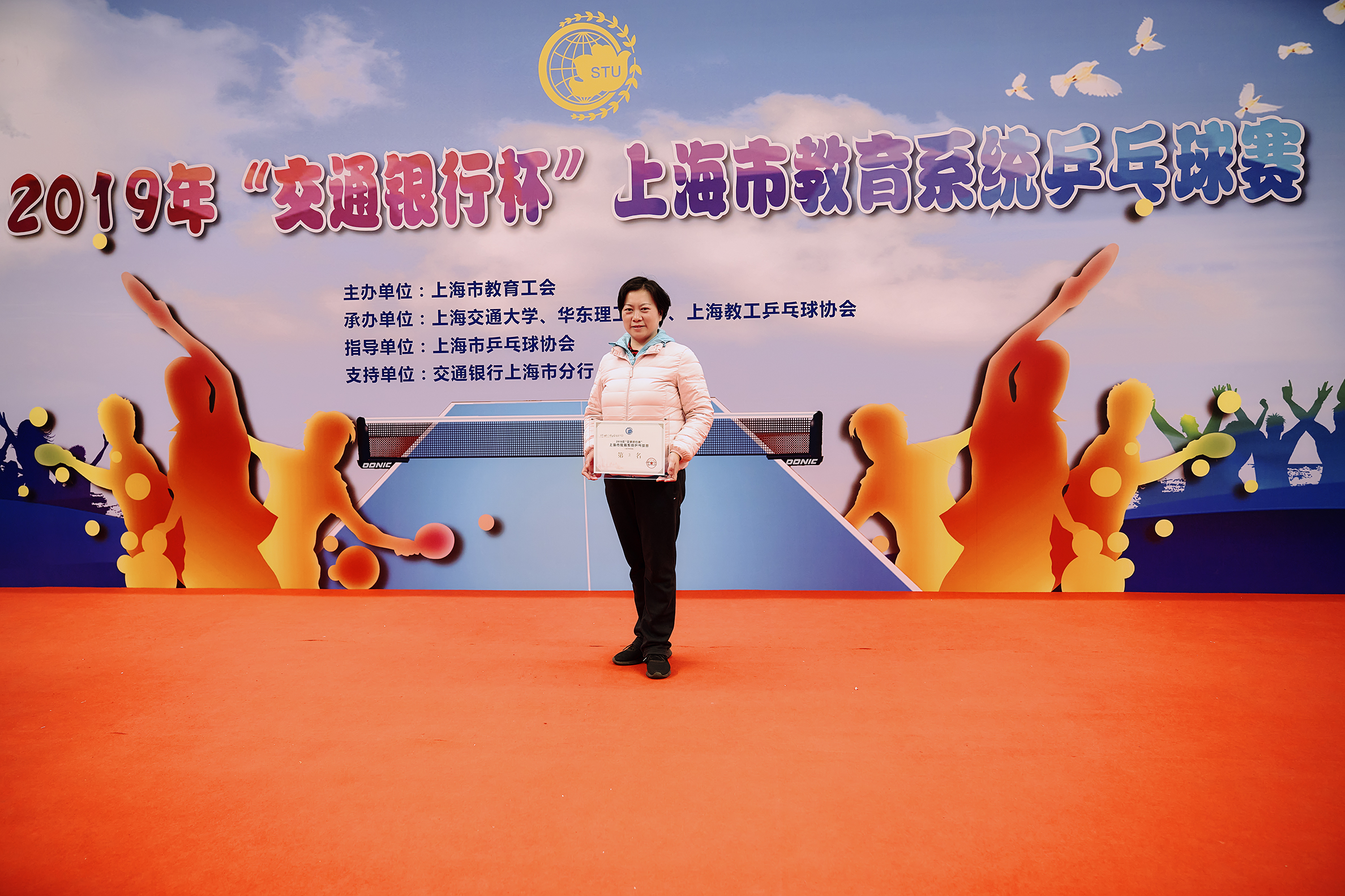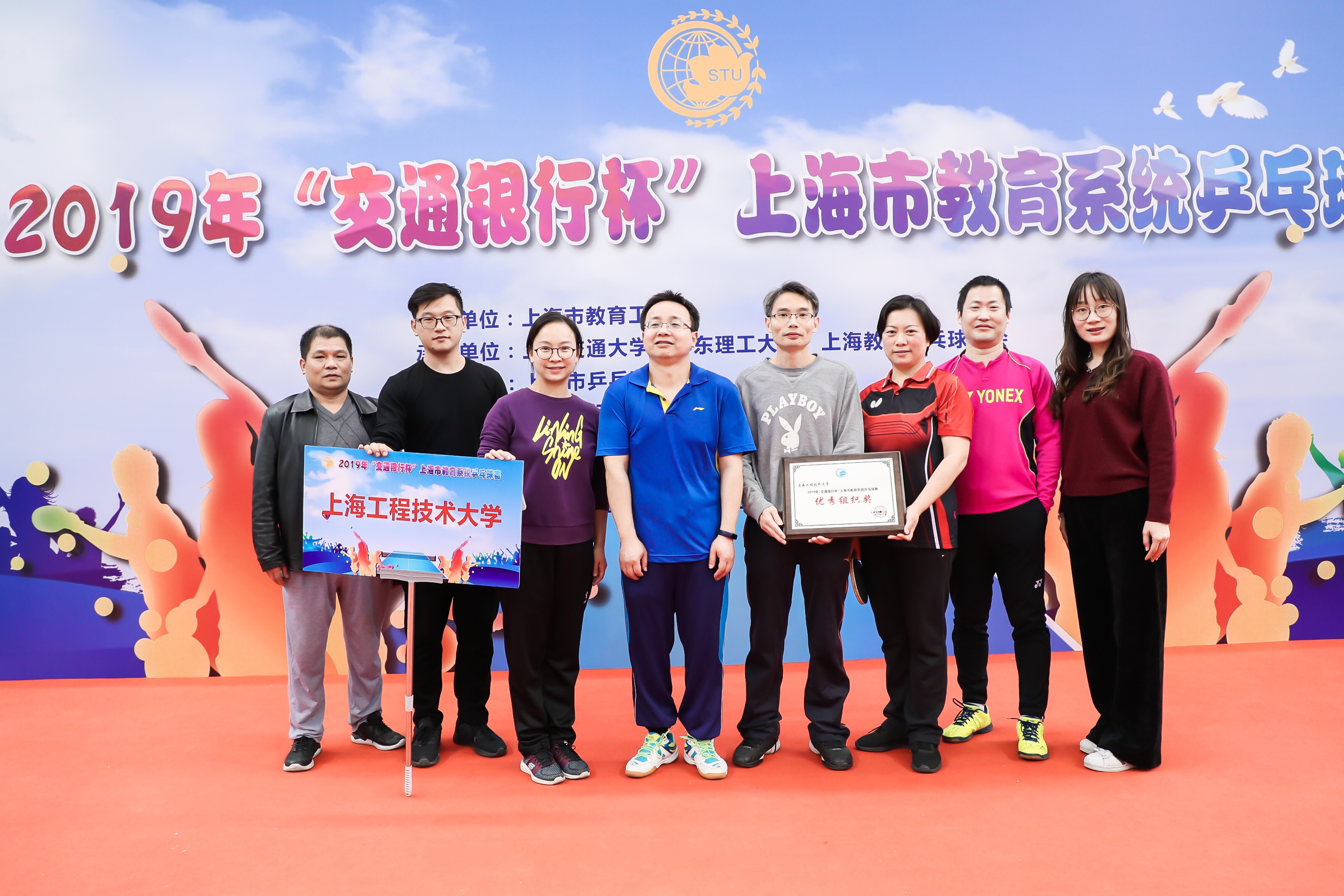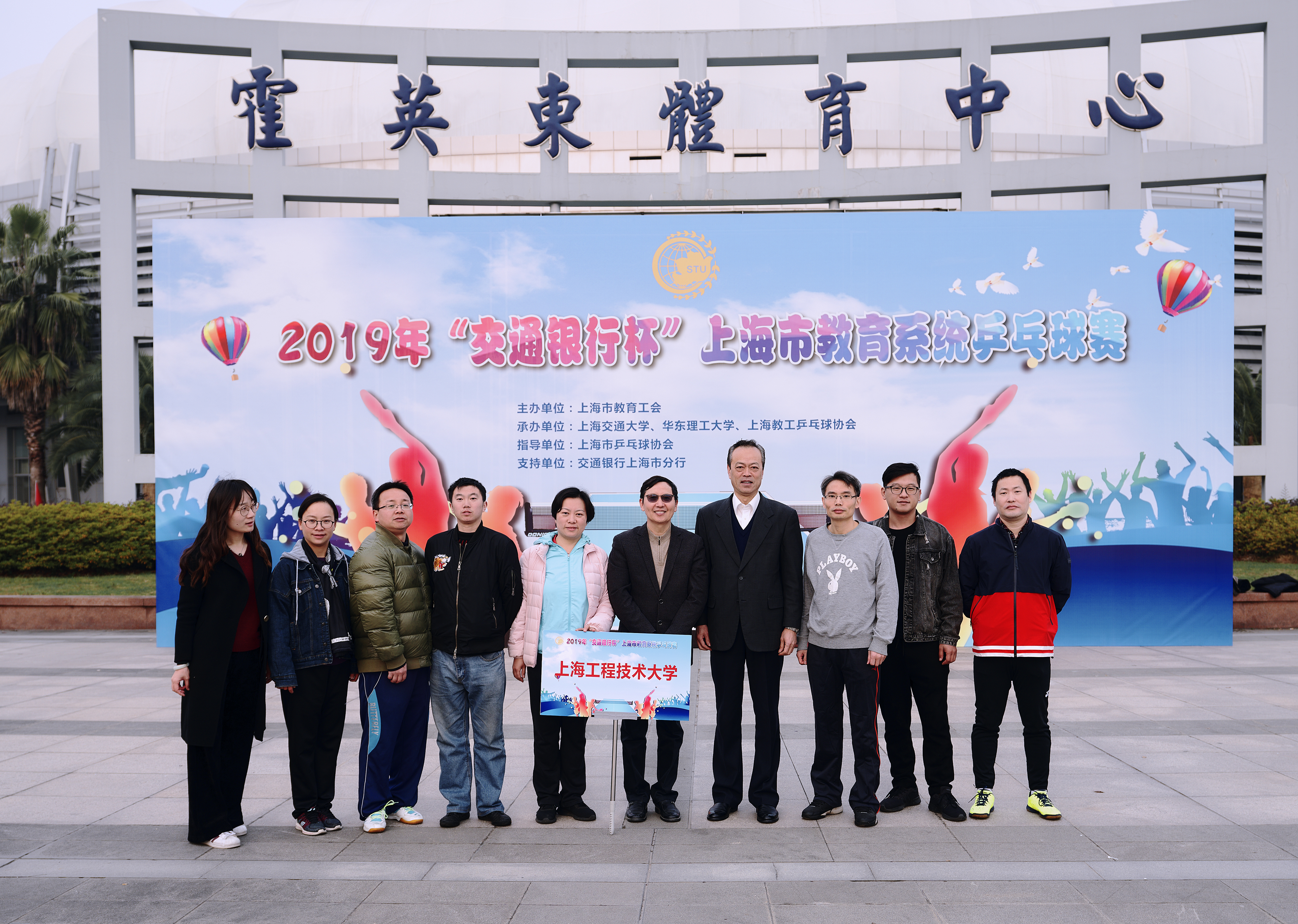 12月14日,2019年“交通银行杯”上海市教育系统乒乓球赛在上海交通大学霍英东体育中心举行。来自全市10个区教育局、6个直属单位和35所高校,共51支队伍400余位运动员同场竞技,尽情享受竞技体育带来的激情与快乐。我校教师邓娜、饶品华、陈小龙、李玲、郑超、沈磊、张嘉安等7位教师组队参赛。