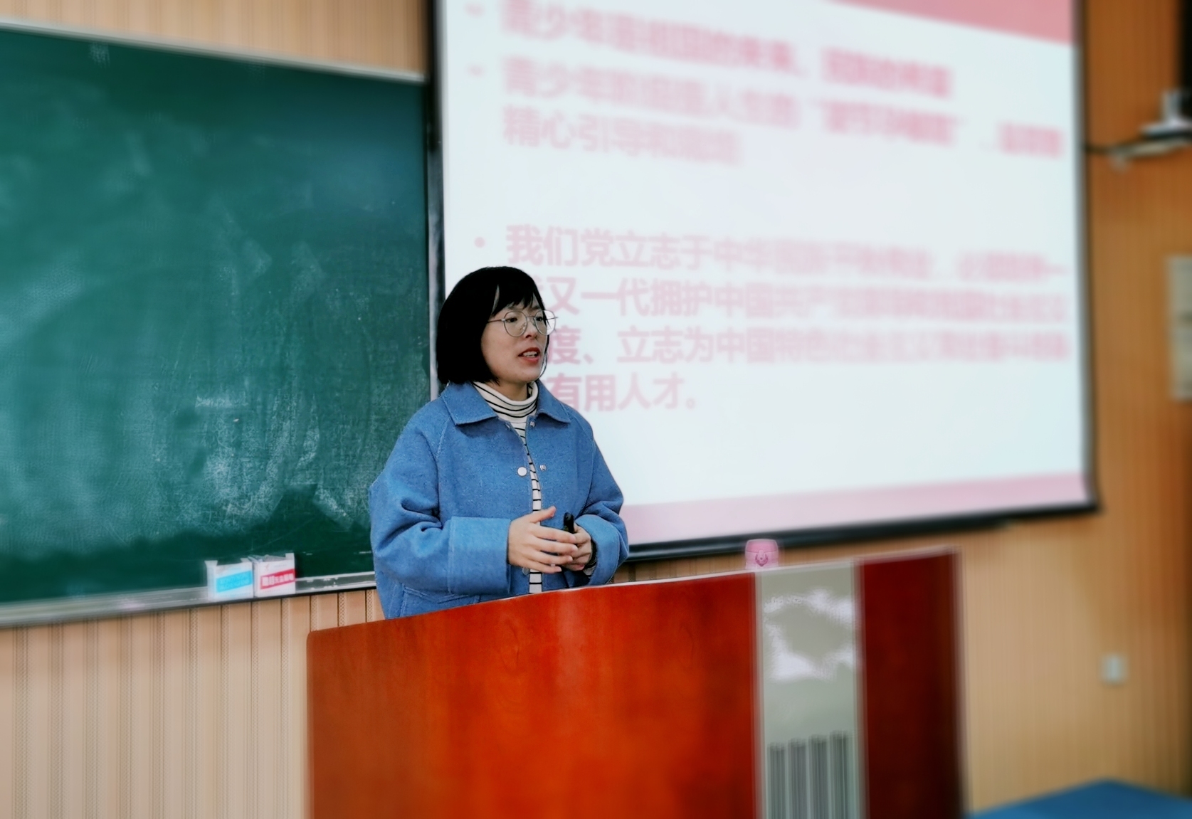 此次特邀华东师范大学马克思主义学院全国青教赛一等奖、上海市“五一劳动奖章”获得者闫方洁教授从青年教师教学竞赛和课堂思政的角度,分享何为一堂好课,如何上好一门课,并分享了自己在青教赛筹备、比赛阶段的经验、方法和技巧,也同青教赛参赛教师进行一对一专题辅导。培训结束后,不少青年教师纷纷围上讲台,希望和闫教授作进一步交流。有的青年老师“有备而来”,现场试讲了一堂竞赛节段,并请闫教授对教案结构设计、教学思路等进行了细致的指导。