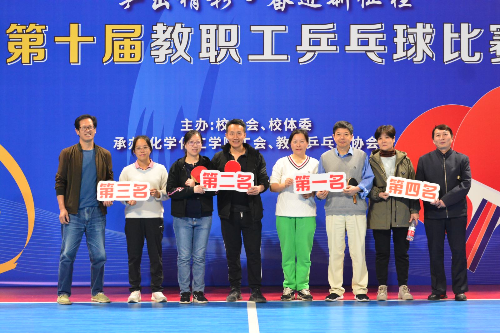 为彰显我校教职工在本科教育教学审核评估中努力拼搏、奋勇争先的良好精神风貌,进一步丰富校园文化,提高教职工健康素质, 11月17日下午,由校工会、校体委主办,化学化工学院和校教工乒乓球协会承办的第十届教职工乒乓球比赛在松江校区体育馆一楼拉开帷幕。此次比赛是校工会持续推进的以“奋进新征程”为主题的系列活动之一。校党委副书记、工会主席史健勇,校工会常务副主席李霞、化学化工学院党委书记宋勤健、体育教学部党总支书记李扬,二级部门工会主席、乒乓球爱好者、参赛选手和裁判员参加了开幕式。