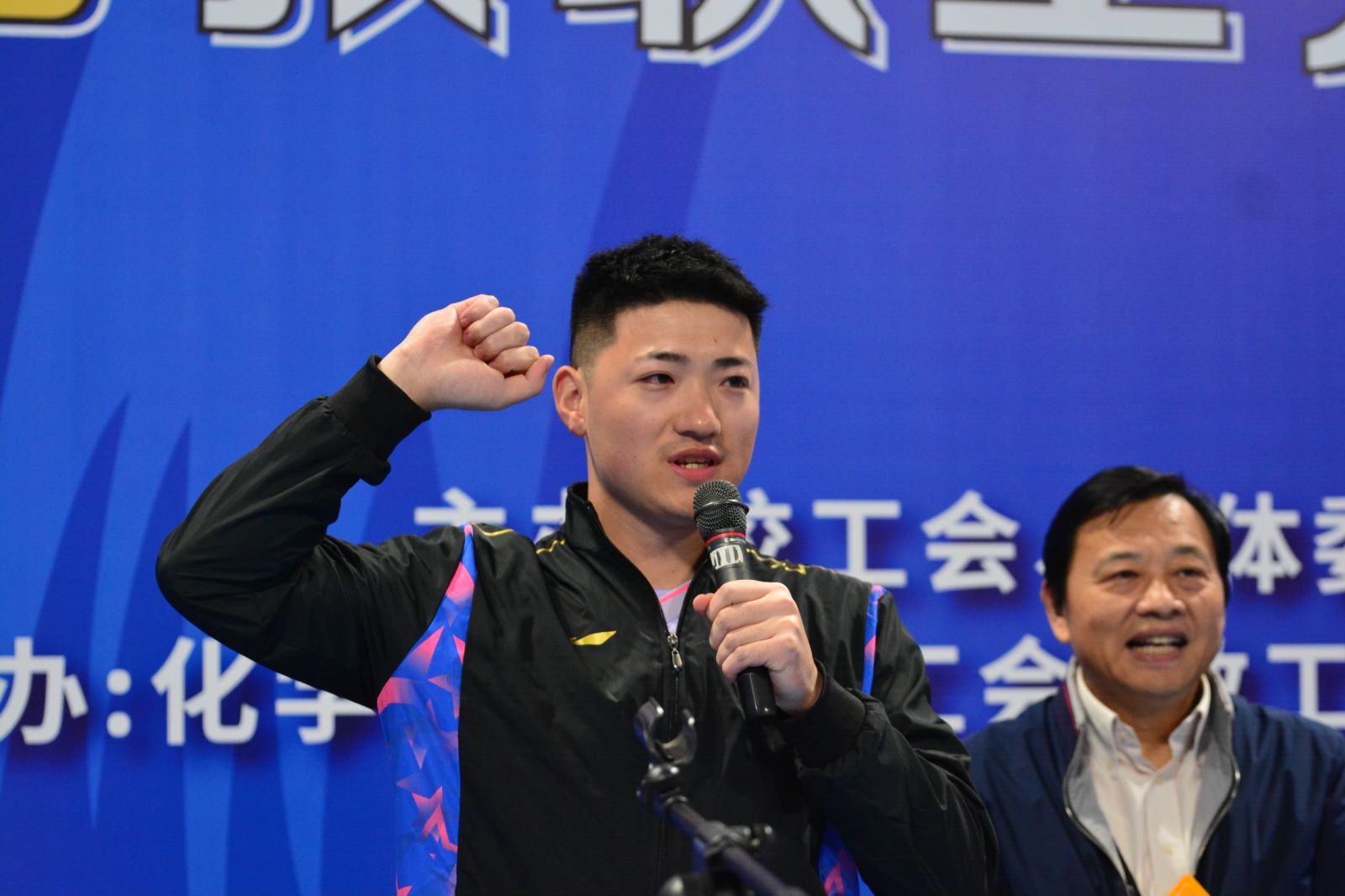 运动员代表陈佳栋老师和国家级裁判员范君捷分别宣誓遵循体育精神,遵守赛场规则,赛出风格、赛出水平。