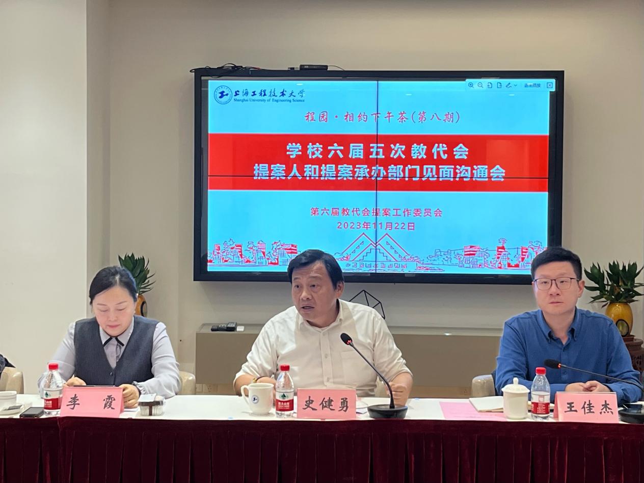 为进一步推进学校六届五次教代会提案的落实,更好地回应教职工所需所盼,11月22日下午,学校在行政楼101室(文化之家)召开六届五次教代会提案人和提案承办部门见面沟通会,暨第八期程园·相约下午茶活动。校党委副书记、工会主席史健勇出席会议并讲话,第六届提案工作委员会委员、各提案承办部门负责人和提案人约20余人参加会议,会议由学校第六届提案工作委员会主任、校长办公室主任王佳杰主持。