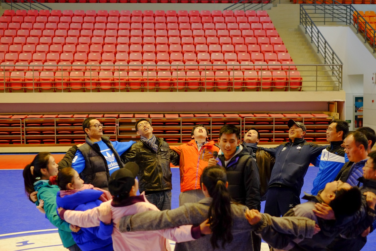 12月2日上午9:00,喜洋洋的音乐在体育馆一楼响起,体育部2016集体生日会暨全民健身活动在这里举行。第一个环节素质拓展,今天我们全体体育老师一起当起了小学生,在我们的素质拓展教练的带领下,做起了素质拓展游戏,破冰、乌鸦和乌贼、五毛一块,一个个紧凑、有趣的小游戏,让老师们不知不觉中放松了心情,全场时时暴起阵阵笑声。通过这些素质拓展游戏,拉近了大家的距离、活跃了活动的气氛,也有一定的心理教学的内容。在游戏休息间隙安排了抽奖环节,由体育部刘伟老师、谢敏老师给大家抽奖、并颁发奖品。